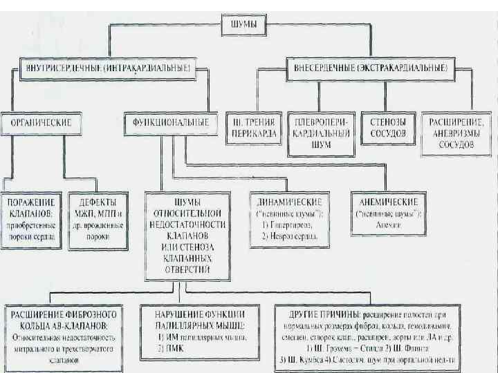 Внутрисердечные шумы: n n Функциональные шумы, в основе нарушение функции клапанного аппарата, ускорение движения крови через анатомически неизмененные отверстия или снижение вязкости крови. Органические (органическое поражение клапанов и других анатомических структур сердца – МЖП или МПП)