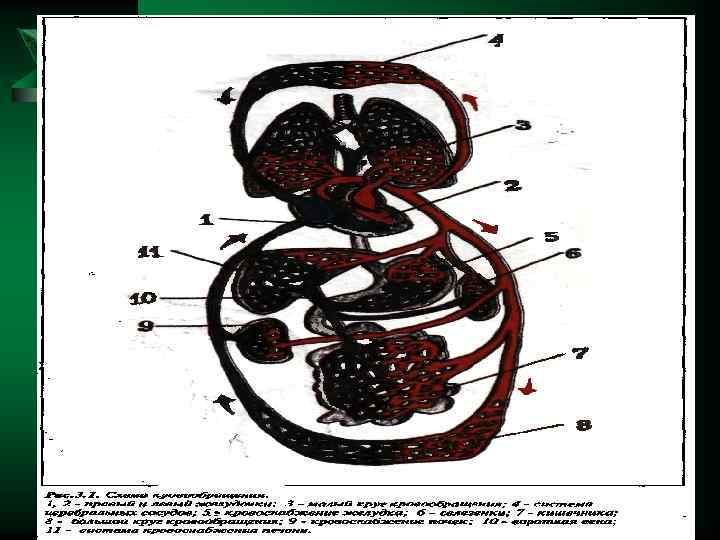 Краткие анатомо-физиологические данные Система кровообращения представлена малым и большим кругом кровообращения. Основная функция малого круга – обеспечение перфузии легких, адекватной легочной вентиляции и поступление оксигенированной артериальной крови в левый отдел сердца. Большой круг обеспечивает приток артериальной крови ко всем внутренним органам и отток от них венозной крови, которая поступает в правый отдел сердца.