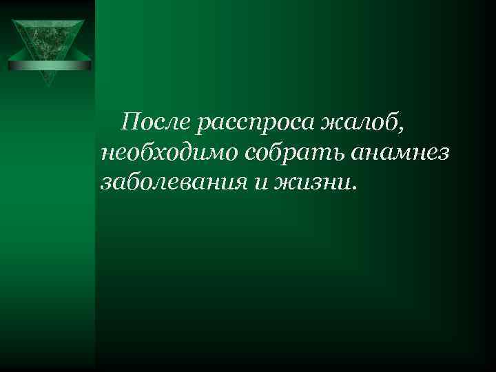 После расспроса жалоб, необходимо собрать анамнез заболевания и жизни.