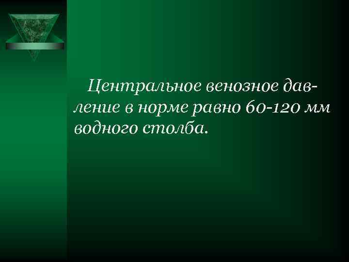Центральное венозное давление в норме равно 60 -120 мм водного столба.