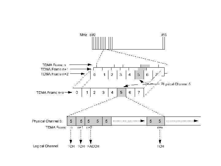 Физический канал GSM FI (n) = 890, 2 + 0, 2 (n-1), МГц; Fu (n) = FI (n) + 45, МГц; 1 < n < 124 (для GSM-900).