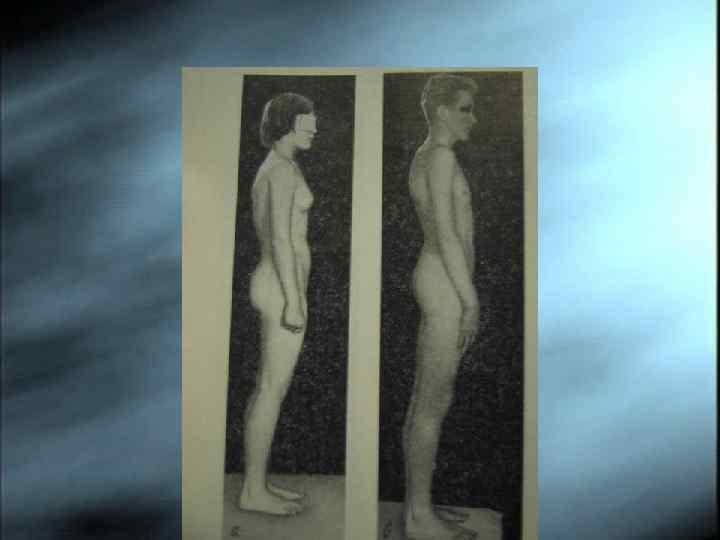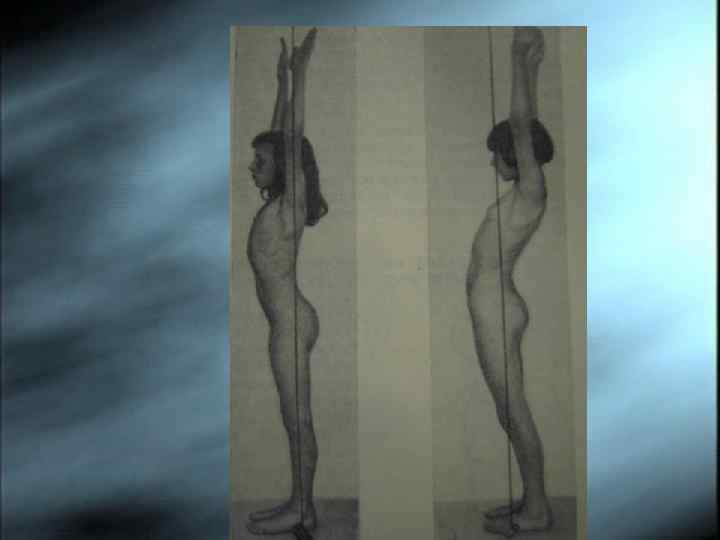 Нормальная осанка. Вертикаль проведенная от сосцевидного отростка, проходящая через центр тяжести (S 2), тазобедренный сустав и наружную лодыжку.