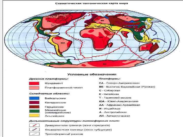 Основные положения глобальной тектоники плит o o o Литосфера подстилается вязкой астеносферой Разделена на плиты Типы перемещений плит: раздвиг, надвиг и поддвиг, по трансформным разломам Спрединг компенсирует субдукцию Причина движений – конвективные течения