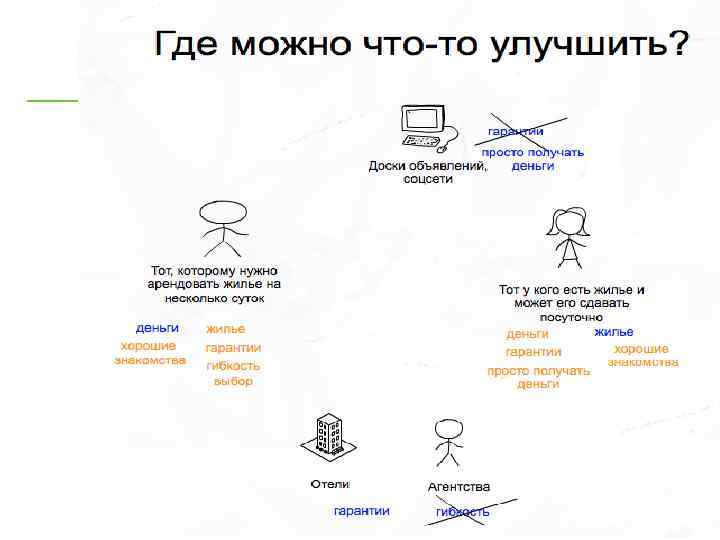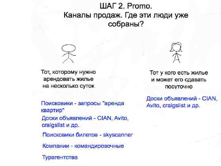 Поиски бизнес-модели на примере кейса Airbnb 1. Рынок. Ниша 3. Проблема и чья она 7. Монетизация, Метрики 2. Каналы продаж 4. Решение, MVP, гипотеза 8. Команда, наставник 3. Структура цен 6. Эксклюзив. Конкуренты 9. To. Do