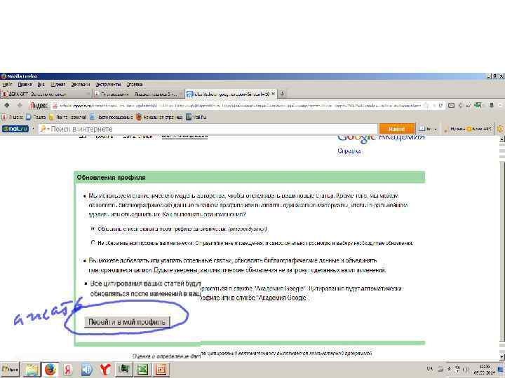 Как создать профиль автора? Настройка профиля Вы можете зарегистрироваться в службе "Библиографические ссылки Академии Google". Это бесплатно и не займет много времени. Для начала создайте новый аккаунт Google или войдите в уже существующий. Рекомендуется использовать личный, а не корпоративный аккаунт, чтобы иметь возможность пользоваться профилем столько, сколько нужно. Войдя в аккаунт Google, вы увидите форму регистрации, где можно проверить правильность написания имени и указать дополнительные сведения (место работы, интересы и т. п. ). Рекомендуется также ввести свой адрес электронной почты в домене научного учреждения, чтобы ваш профиль отображался в результатах поиска Академии Google. На следующей странице вы увидите группы статей от авторов, чьи имена похожи на ваше. Найдя группы своих материалов, нажмите "Добавить все статьи" рядом с каждой из них. Используйте ссылку "Просмотреть все статьи", чтобы добавить отдельные тексты из данной группы. Если в отображаемых группах нет ваших статей, нажмите "Поиск статей", чтобы выполнить обычный поиск в Академии Google, и добавьте свои материалы по одному. Поиск можно выполнять неограниченное число раз. Когда вы закончите добавлять статьи, вам будет предложено определить, что делать в случае изменения данных в Академии Google. Вы можете включить автоматическое обновление профиля или выбрать предварительный просмотр вносимых изменений. В любом случае вы всегда сможете внести изменения вручную. Последний этап – заполнение страницы профиля. Здесь вы сможете добавить окончательные штрихи: загрузить свою фотографию, нажать на ссылку для подтверждения в электронном письме, еще раз проверить список статей и, когда все будет готово, сделать профиль общедоступным. Вот и все! Теперь ваш профиль будет отображаться в результатах поиска Академии Google по вашему имени.