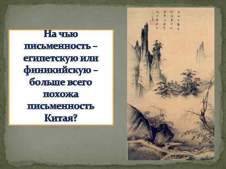 На чью письменность – египетскую или финикийскую – больше всего похожа письменность Китая?