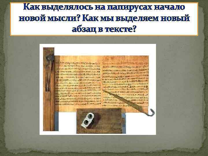 Как выделялось на папирусах начало новой мысли? Как мы выделяем новый абзац в тексте?