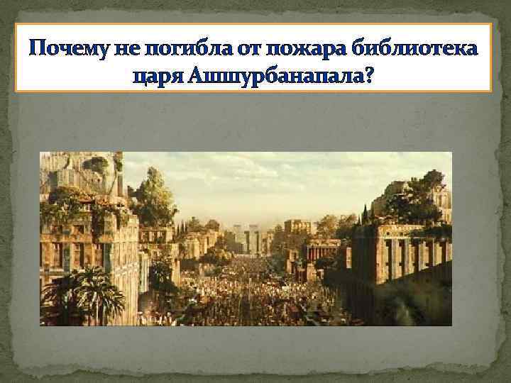 Почему не погибла от пожара библиотека царя Ашшурбанапала?