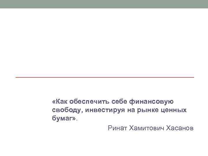 «Как обеспечить себе финансовую свободу, инвестируя на рынке ценных бумаг» . Ринат Хамитович Хасанов