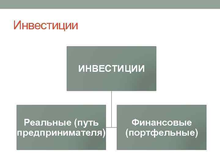 Инвестиции ИНВЕСТИЦИИ Реальные (путь предпринимателя) Финансовые (портфельные)