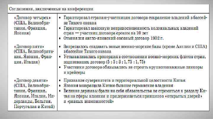 Решения по территориальным вопросам Военные ограничения Прочие условия (экономические, политические так далее)