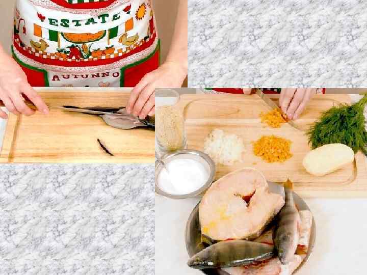 Очистка от чешуи • Рыбу тщательно отчистить от чешуи. Для облегчения процесса чистки можно обдать рыбную тушку кипятком, однако это существенно ухудшит вкус рыбы.