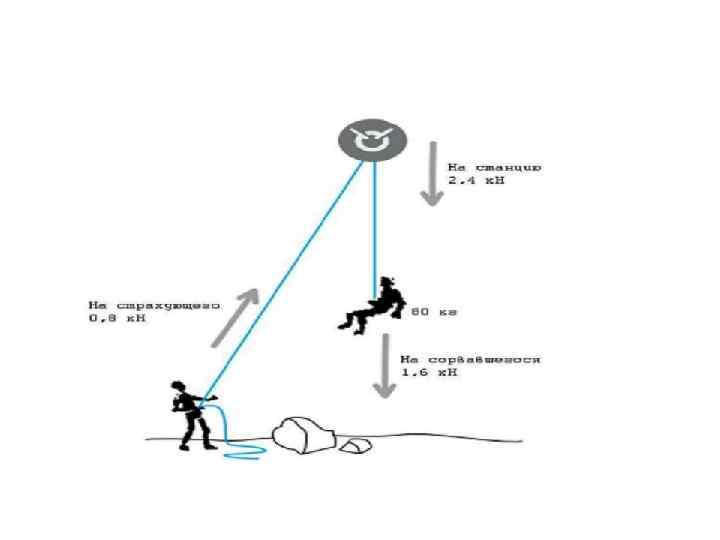 Прочность некоторого альпинистского снаряжения. Страховочная система - 15 KN Силовое кольцо - 40 KN Веревка - 20 KN (около 2000 кг) Карабин - 7 – 22 KN Оттяжка - 22 KN Петля - 22 KN Закладка - 5 – 10 KN Френд - до 12 KN Ледоруб - 2, 6 KN (270 кг) Ледобур – 12 KN Репшнур 6 мм – 600 кг, 7 мм – 1000 кг P = m *g N = кг * 9, 8 м/с2 10 N ~ 1 кг 1 KN ~ 100 кг