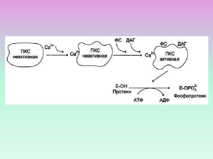 ПРОЦЕССЫ, В КОТОРЫХ УЧАСТВУЕТ ПРОТЕИНКИНАЗА С Секреция Сокращения ГМК Агрегация тромбоцитов Фосфорилирование рецепторов