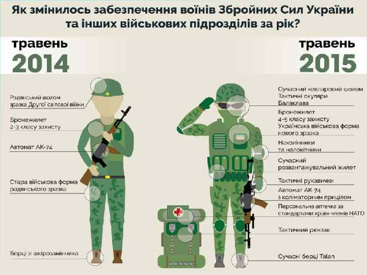 ТАКТИКО-ТЕХНІЧНІ ХАРАКТЕРИСТИКИ БОЙОВОЇ ТЕХНІКИ Характеристики БМП-1 БМП-2 БТР-70 БТР-80 Вага, (т) 13 13 11, 5 13, 6 Екіпаж 3+8 2+8 Озброєння: гармати, (мм) 73 30 кулемет ПКТ ПКТ ПКВТ кпвт Боєприпаси: до гармати 40(16+2) 1250 до кулемета 2000 до. Ф-1 10 10 до ПТУР 4 4 „Фагот" Максимальна швидкість (км/год) 65 65 80 80 Запас ходу, (км) 550 400 500 Потужність двигуна, (к. с. ) 300 230(2 x 11) 500+2000