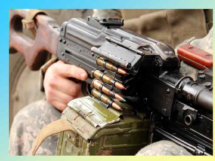 КРУПНОКАЛІБЕРНИЙ КУЛЕМЕТ НСВТ Калібр (мм) Вага з спорядженим магазином (кг) Місткість магазину 12, 7 25 50 Початкова швидкість кулі (м/с) 845 Прицільна дальність стрільби (м) 2000 Бойова скорострільність (патр/хв. ) - чергами 80100 - одиночними Темп стрільби (постр/хв. ) 700800 Забійна сила кулі (м) 6000 Гранична відстань польоту кулі (м) 6000 Дальність прямого пострілу