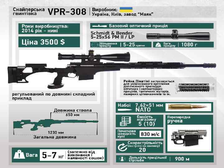Снайперська гвинтівка Форт-301 Калібр 7, 62 х51 мм. , шестикратний оптичний приціл, вмістимість магазину -25 патронів, прицільна дальність 1000 м.