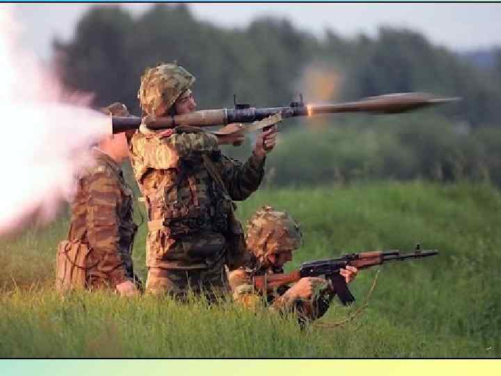Протитанковий реактивний гранатомет РПГ - 29 Призначений для знищення танків з потужною бронею і динамічним захистом. Оснащений двума кумулятивними бойовими частинами, які розташовані одина за одною. Перша з них невеликого розміру і призначена для знищення проти. кумулятивного екрану або реактивної броні, а велика вже безпосередньо вражає сам танк.