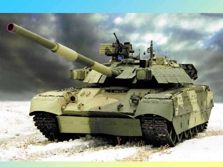 ТАКТИКО-ТЕХНІЧНІ ХАРАКТЕРИСТИКИ ТАНКІВ Характеристики Т-64 Т-72 Вага, т 38 41 Екіпаж 3 3 125 ПКТ, Утес АКМ 1 1 ПТУР „Шмель" Озброєння: гармата кулемет Боєприпаси: до гармати 37 39 до ПКТ 2000 до Утесу 300 до. Ф-1 10 10 до АКМ 300 Максимальна швидкість (км/год) 60, 5 60 Запас ходу (км) 500 -кут підйому та спуску 30° - Р 1 В (М) 2, 85 - стіна (м) 0, 85 - брід (м) 1 1, 3 - з ОПВТ - глибина (м) до 5 Потужність двигуна (к. с. ) 700 780 Подолання перешкод: