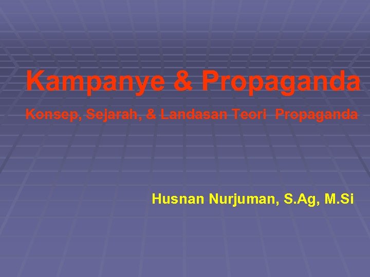 Kampanye & Propaganda Konsep, Sejarah, & Landasan Teori Propaganda Husnan Nurjuman, S. Ag, M. Si