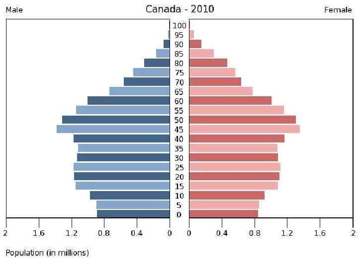 Население Продолжительность жизни в Канаде — 74, 9 лет для мужчин и 81, 4 года для женщин. Это один из самых высоких показателей в мире. Росту населения в равной мере способствует иммиграция и естественный прирост населения (число новорожденных минус число умерших.