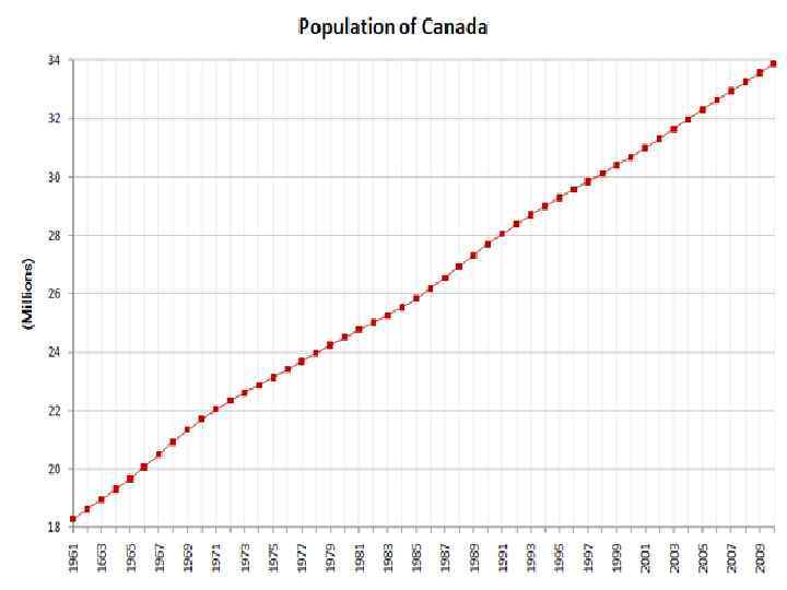 Население Канады насчитывает всего 32, 8 миллионов человек, причём по этому показателю Канада занимает 37 место в мире. В период с 1991 по 1996 года население Канады возрастало ежегодно на 1, 1%, что является самым высоким показателем из стран Большой Семерки. Рост населения в 2004 г. составил 0. 92 %.