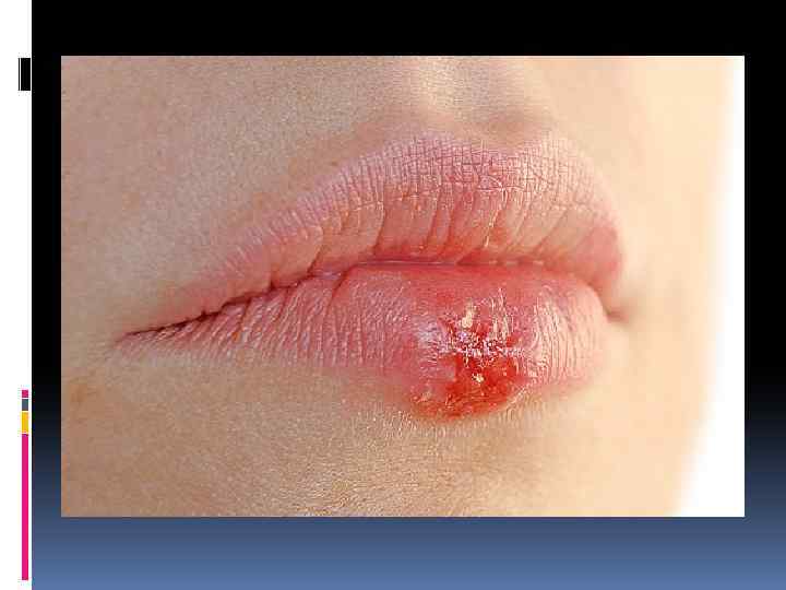 С простым герпесом, при котором на слизистой оболоч ке рта и губ пузырьки, крупные слившиеся пузыри субэпите лиального расположения и эрозии покрыты фибринозным на летом, который с трудом снимается, обнажая эрозивную кро воточащую поверхность. Кроме того, при простом герпесе на блюдаются отек и гиперемия СОПР, катаральный гингивит, нарушение общего состояния (повышение температуры, не домогание, слабость, головная боль).