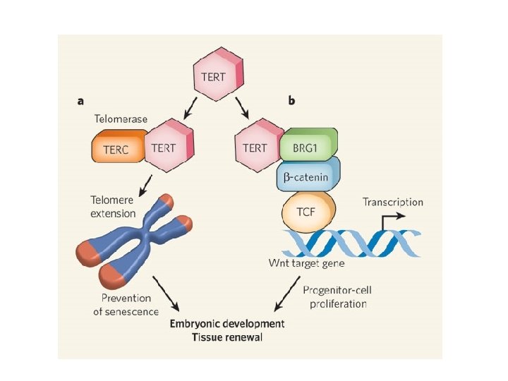 Альтернативные функции теломеразы • Функции TERT будут рассмотрены далее • Функции TERC пока не обнаружены