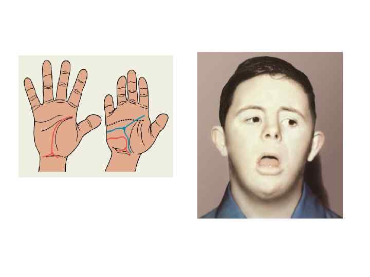 Изменение числа аутосом Синдром Дауна 47, XX, XY, +21 1: 800 Признаки: умственная отсталость; брахицефалия, эпикант, гипертелоризм, широкая переносица, монголоидный разрез глаз, обезьянья складка на ладони; врожденные пороки развития сердца и пищеварительного тракта. Три формы синдрома Дауна: 1. Мозаичная (47, +21/46) 2. Транслокационная - обычно t(14; 21) 3. Полная трисомия – 95% случаев
