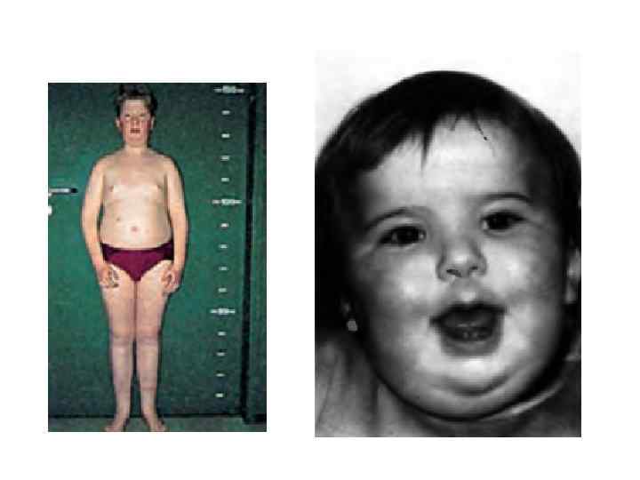 Признаки синдрома Прадера-Вилли: гипотония, гипогонадизм, ожирение, низкий рост, небольшие ступни и кисти, легкая степень умственной отсталости