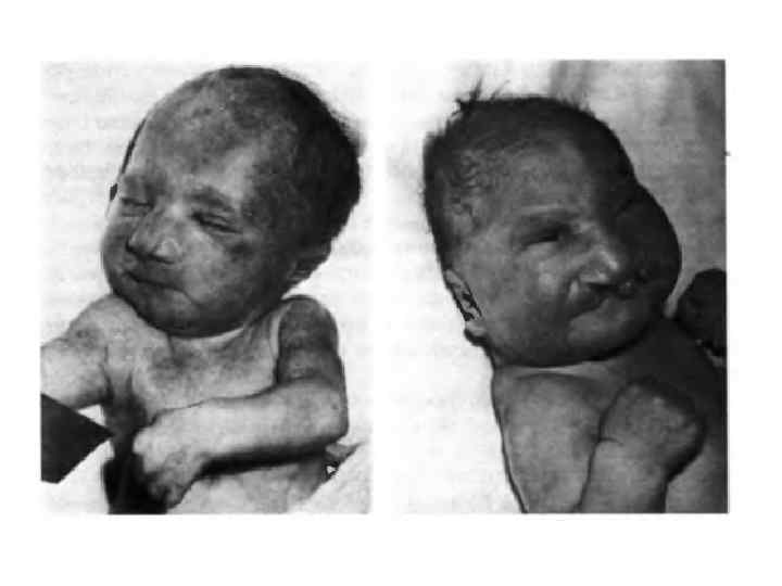 Трисомия 13 (синдром Патау) 47, XX, XY, +13 1: 12 000 Признаки: умственная отсталость, тяжелые нарушения нервной системы; скошенный лоб, недоразвитые ушные раковины, дефекты черепа, микрофтальмия, расщелина губы и неба, полидактилия. Дети с синдромом Патау редко живут дольше 6 месяцев.