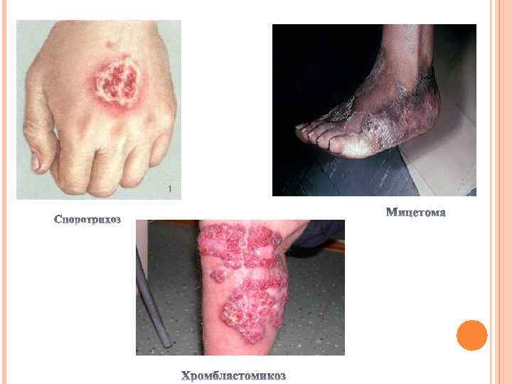ВОЗБУДИТЕЛИ ПОДКОЖНЫХ МИКОЗОВ. Возбудители подкожных микозов находятся в почве, древесине или на отмирающих, гниющих растениях. Внедряясь в местах микротравмы кожи (повреждения занозой, шипом, внедрение других посторонних тел), они вовлекают в процесс глубокие слои дермы, подкожные ткани, мышцы и фасции. К подкожным микозам относятся споротрихиоз, хромобластомикоз, феогифомикоз и эумикотическая мицетома.