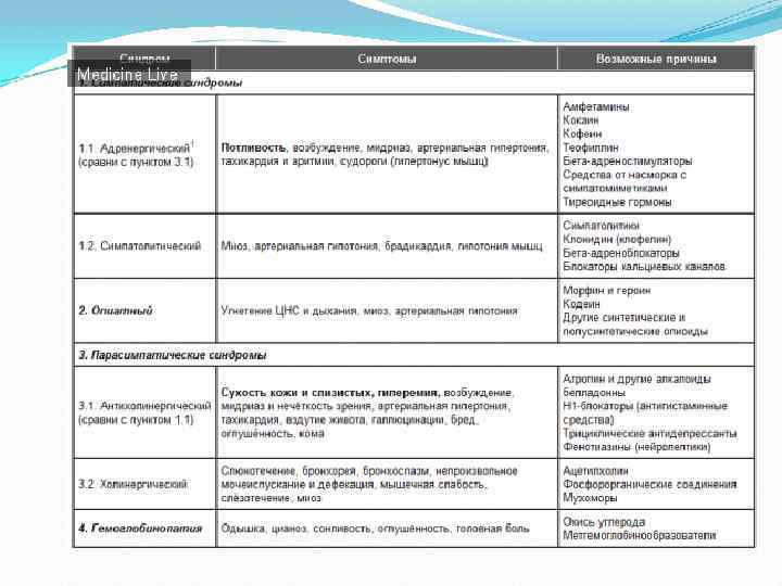 Клинические стадии острых отравлений Токсикогенная (ранняя) — специфическое воздействие на организм токсичного вещества (нарушение функции мембран, белков и других рецепторов токсичности). Соматогенная — адаптационные реакции организма, направленные на ликвидацию нарушений гомеостаза, следовые поражения различных органов, возникающие после удаления или разрушения токсичного агента По тяжести отравлений: Лёгкие Средней тяжести Тяжёлые Крайне тяжёлые