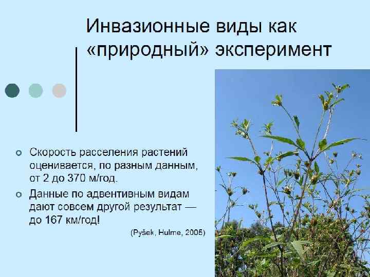 Что такое «инвазионный вид» ? Инвазионный вид — калька с английского ―invasive species, от ― invasion — инвазия (нашествие =вселение =вторжение. ) Инвазия предполагает самостоятельное проникновение или случайный занос вида на новую территорию, заканчивающееся акклиматизацией вида. Термин «инвазионный вид» широко применяется к заносным видам растений, животных, микроорганизмов, которые вне естественного ареала оказались способны к активному размножению и расселению, нередко вытесняя виды местной биоты. В русском варианте термин «не устоялся» : используют варианты «инвазионный» , «инвазивный» , «инвазийный» и даже дословно от invader (захватчик, оккупант) - «инвайдер» . Инвазионные виды — лишь часть адвентивных, или чужеродных, видов.