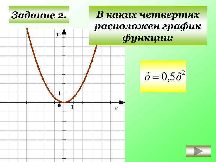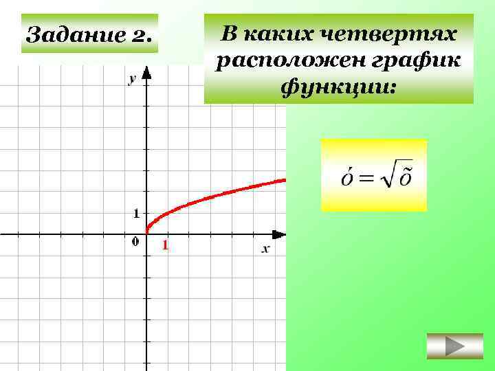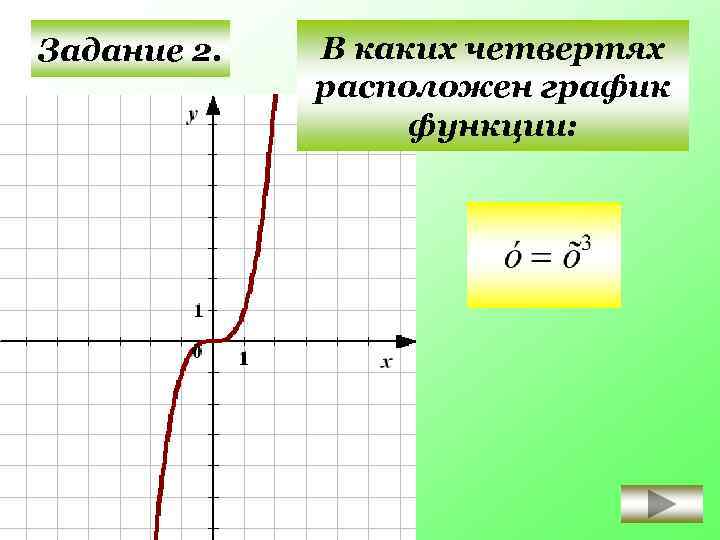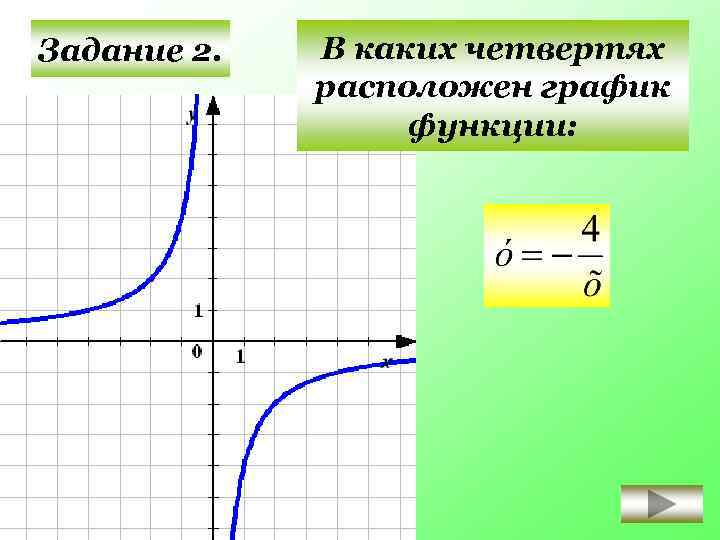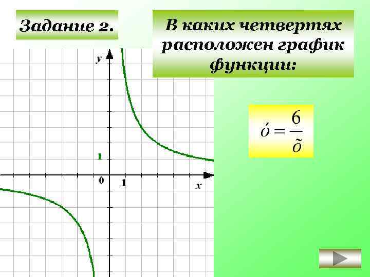 В каких четвертях расположен график функции: Задание 2. II I III IV