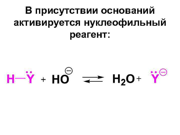 В присутствии оснований активируется нуклеофильный реагент: