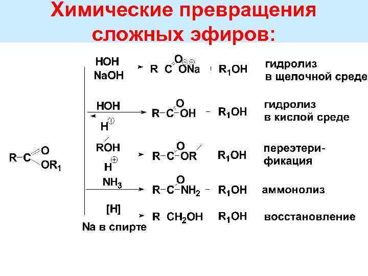 Химические превращения сложных эфиров: