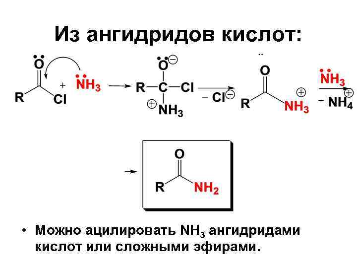 Из ангидридов кислот: • Можно ацилировать NH 3 ангидридами кислот или сложными эфирами.