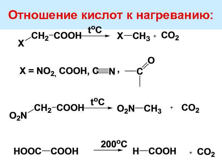 Отношение кислот к нагреванию: