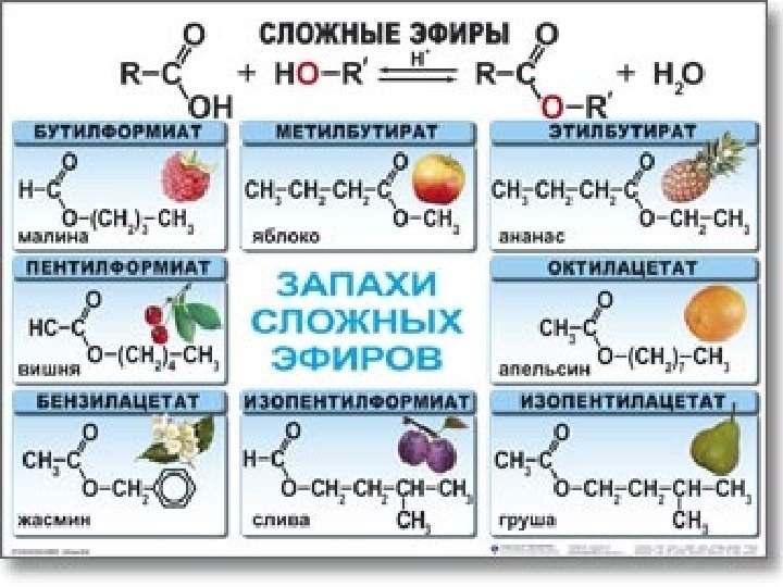 Химические свойства карбоновых кислот • Сложные эфиры – это продукт взаимодействия карбоновых кислот и спиртов. • Реакция этерификации – это реакция между органической кислотой и спиртом