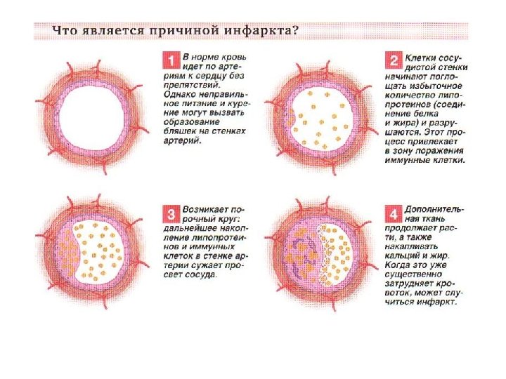 Ишемическая болезнь сердца (ИБС) • Ишемия – это недостаточный доступ крови к органу, который вызван сужением или полным закрытием просвета в артерии. • Ишемическая болезнь сердца – группа сердечнососудистых заболеваний, в основе которых лежит нарушение кровообращения в артериях, обеспечивающих кровью сердечную мышцу (миокард). Эти артерии называются коронарными, отсюда еще одно название ишемической болезни – коронарная болезнь сердца. • ИБС – это один из частных вариантов атеросклероза, который поражает коронарную артерию. Отсюда происходит еще одно название ИБС – коронаросклероз.