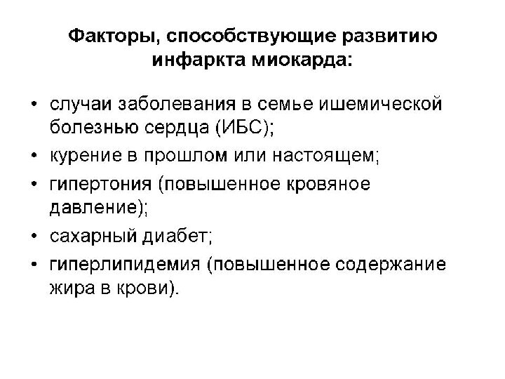 Острая и хроническая формы ишемической болезни сердца • Острая форма ИБС проявляется в таких заболеваниях, как острый инфаркт миокарда, внезапная коронарная (или сердечная) смерть. • Хроническая форма ИБС проявляется стенокардией, различными видами аритмий и сердечной недостаточностью. Эти формы могут встречаться как по отдельности, так и одновременно. • Стенокардия – это одна из стадий развития ИБС. По сути, это периодические сокращения (спазмы) кровеносных сосудов и нарушения кровоснабжения сердца. Основным признаком стенокардии являются внезапно возникающие приступообразные боли в груди, которые локализуются обычно за верхней или средней частью грудины или несколько влево от нее и иррадиируют в левую лопатку, плечо, предплечье, реже — в шею, нижнюю челюсть и даже в верхнюю часть живота.