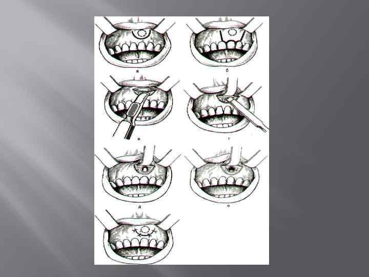 Резекция верхушки корня зуба Эта операция показана, когда невозможно устранить хронический воспалительный процесс в периодонте с помощью консервативных методов лечения, а также в тех случаях, когда канал зуба закрыт застрявшим в нем инородным телом (головка бора, отломок пульпэкстрактора и др. ), препятствующим дальнейшему лечению периодонтита. Она также показана при недостаточном выполнении канала твердеющим пломбировочным материалом (цемент), при перфо рации стенки корня в верхушечном отделе во время оперативного вмешательства по поводу хронического остеомиелит. а, распрос транявшегося на верхушку корня соседнего зуба. В основном производят резекцию верхушки корня резцов и клыка, а также малых коренных зубов на нижней челюсти, реже — на верхней.