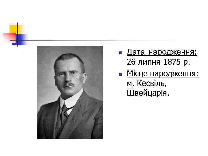 n n Дата народження: 26 липня 1875 р. Місце народження: м. Кесвіль, Швейцарія.