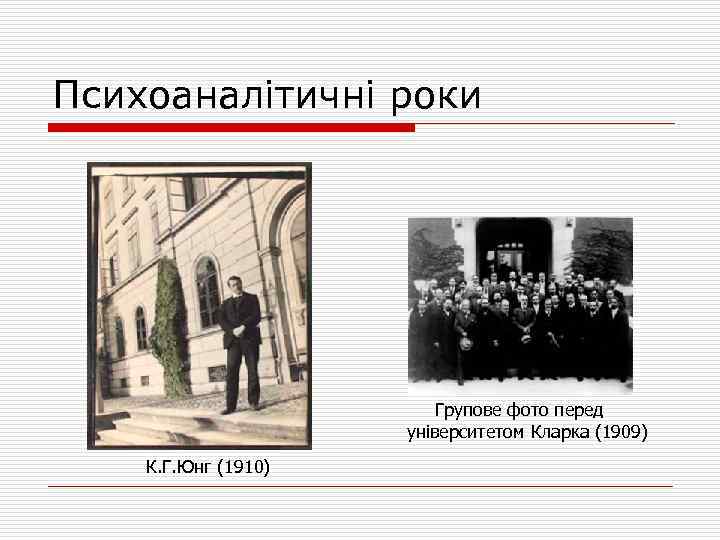 Психоаналітичні роки Групове фото перед університетом Кларка (1909) К. Г. Юнг (1910)