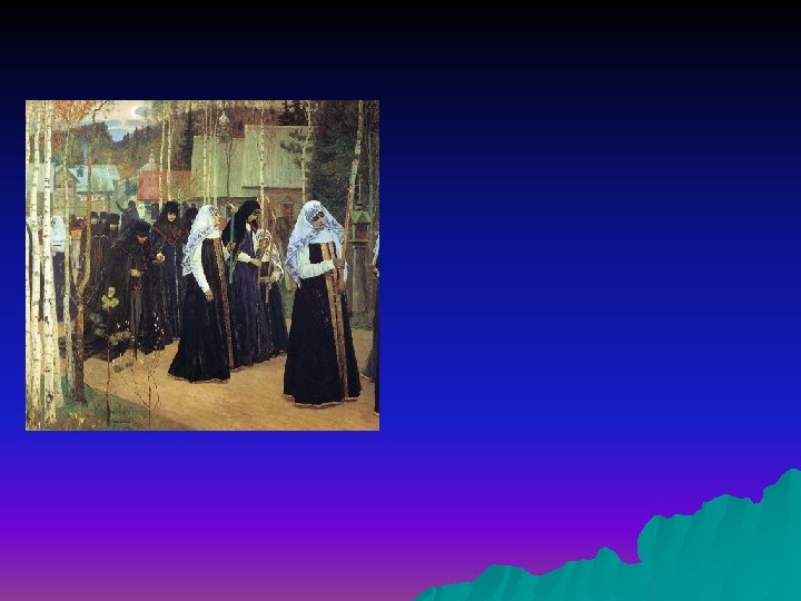 На фоне хмурого деревенского пейзажа разворачивается нестройное пьяное шествие с образами и хоругвями после праздничной пасхальной службы. С жестким реализмом Перов передает не столько физическое, сколько духовное убожество этих людей.