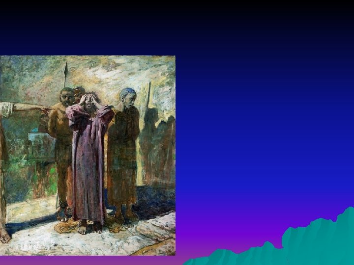 Картина отображает действие: покидающий дворец прокуратора Пилат, остановившись перед Христом, надменно задаёт вопрос, на который Иисус соответственно ничего не ответил.