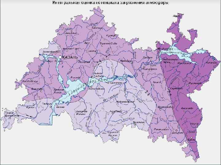 Картографирование ПЗА – потенциала загрязнения атмосферы – показывает, во сколько раз средний уровень загрязнения атмосферного воздуха в конкретном районе, с определенной повторяемостью неблагоприятных для рассеивания примесей метеорологических условий (НМУ), будет выше или ниже, чем в некотором другом районе, принятом за эталон Проводится на основе данных стационарных метеорологических наблюдений Основной способ – моделирование процессов рассеивания выбросов от источников с учетом статистических данных и климатических характеристик Различают: - климатический, - метеорологический потенциал загрязнения атмосферы.