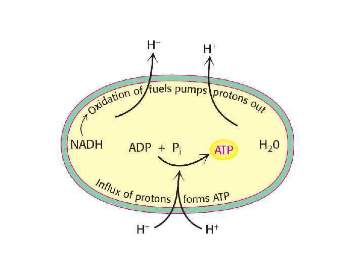 Роль дыхательной цепи митохондрий в превращении энергии окиспения высокомолекулярных веществ в АТФ. Энергия окисления в виде 2 Н (восстановит. эквивалент) накапливается в дыхательной. цепи и используется для синтеза АТФ жиры жирные кислоты глицерин углеводы белки глюкоза и др. аминокислоты АТФ β – окисление ж. к-т Ацетил. Ко. А цтк 2 Н А ц е митохондрия т др. источники восст. эквивал. и л дыхательная цепь АДФ