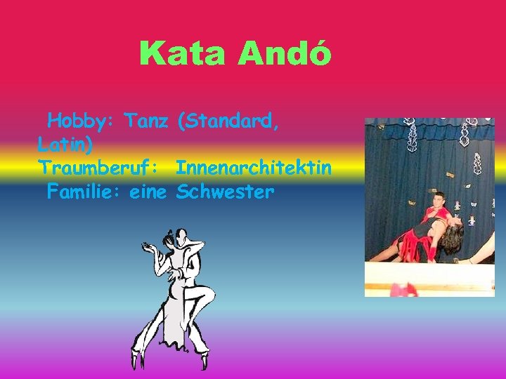 Kata Andó Hobby: Tanz (Standard, Latin) Traumberuf: Innenarchitektin Familie: eine Schwester